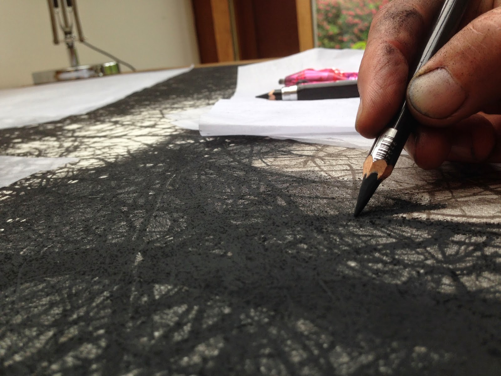 More hours pass, the studio warms. Daisy sleeps through the morning dreaming of rabbits and my piece of paper stays stubbornly pristine. I continue to sit with my back to it, earnestly studying spikelets, ligules, nodes and leaves. The names alone are distracting: